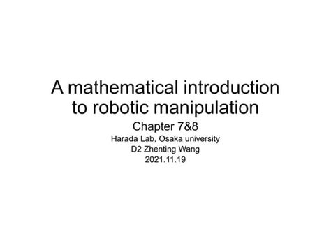 OEH - Free PDF A MATHEMATICAL INTRODUCTION TO ROBOTIC MANIPULATION SOLUTION PDF Doc ManyBooks